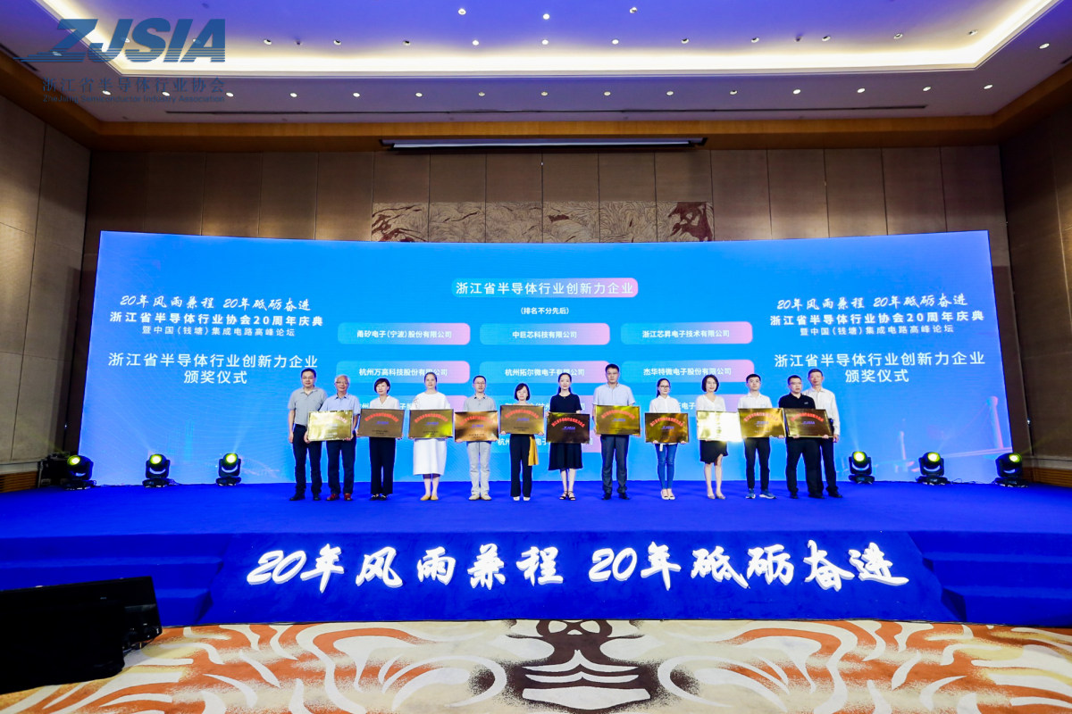 近日,我公司被評選為首批“浙江省半導體行業(yè)最具創(chuàng)新力企業(yè)”。在2021年6月18日下午舉行的浙江省半導體行業(yè)協會20周年慶典中,作為協會的理事單位,我公司質量副總楊軍出席并代表公司領獎。