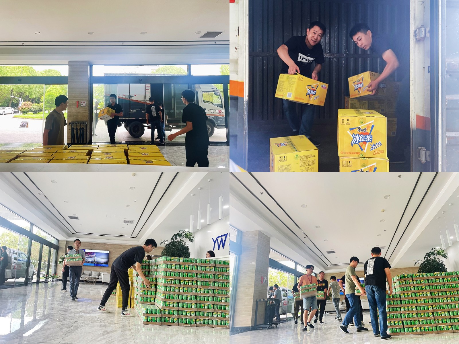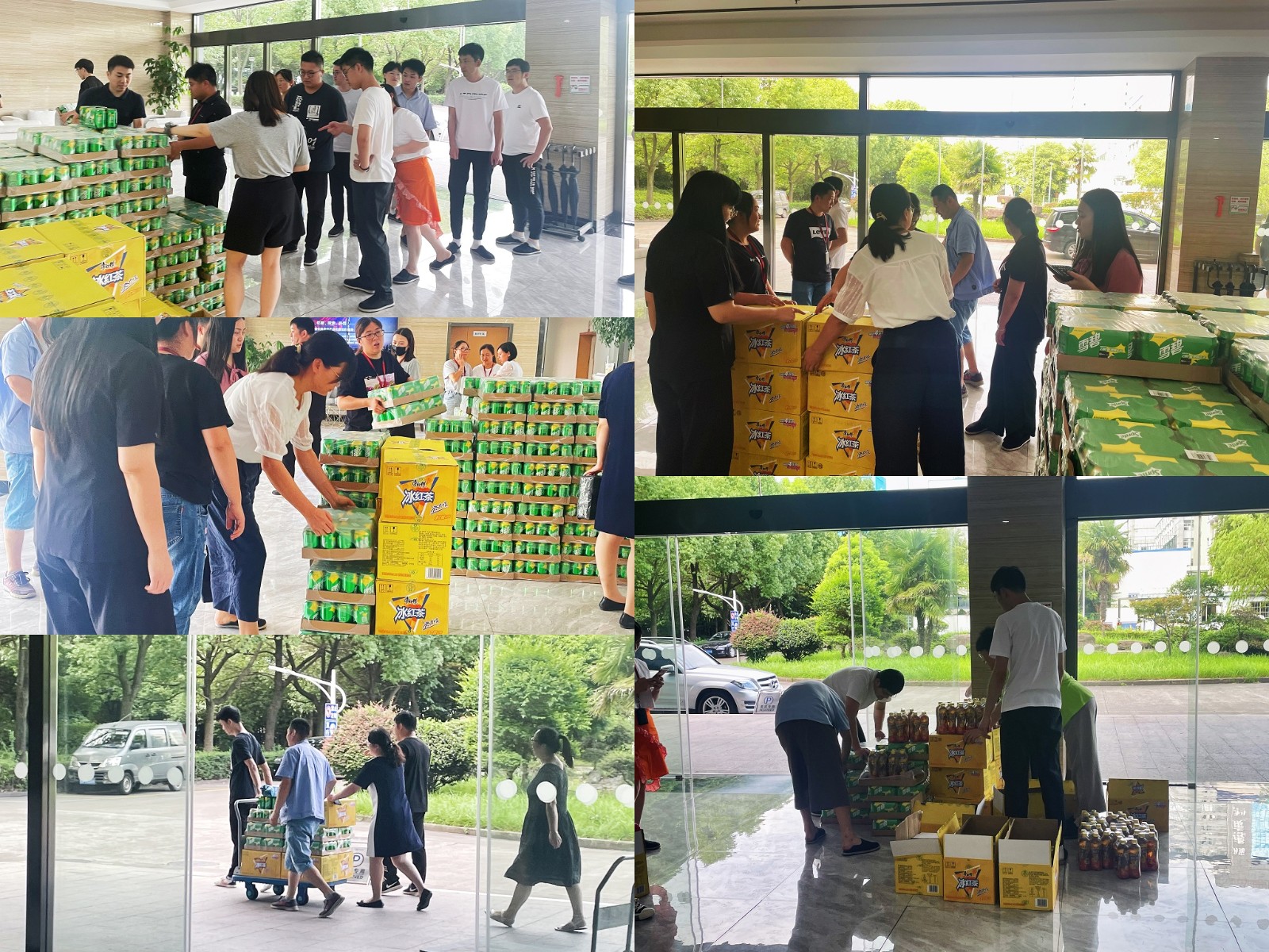 7月19日下午,在人力行政部的組織下,許多男同事自發(fā)地承擔(dān)起飲品搬運的工作,將飲品從大卡車上統(tǒng)一搬到公司前臺。隨后,各個部門在接到電話通知后依次來到前臺大廳領(lǐng)取清涼飲料。在各部門同事們的默契配合下,核對、清點、搬運工作有條不紊地開展,不少同事在收到飲料福利后表示很驚喜。