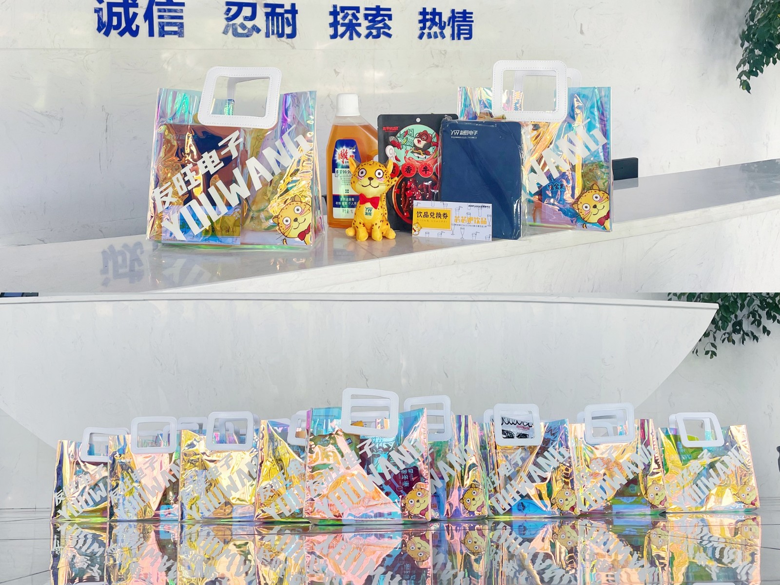而在不久之前的7月15日,公司也為公司裝修改造期間,在臨時辦公場地過渡辦公的各個部門的小伙伴們送上了驚喜小禮品——吉祥物玩偶、定制筆記本、芯芯吧飲品券、洗護用品以及零食組成的公司定制禮包。