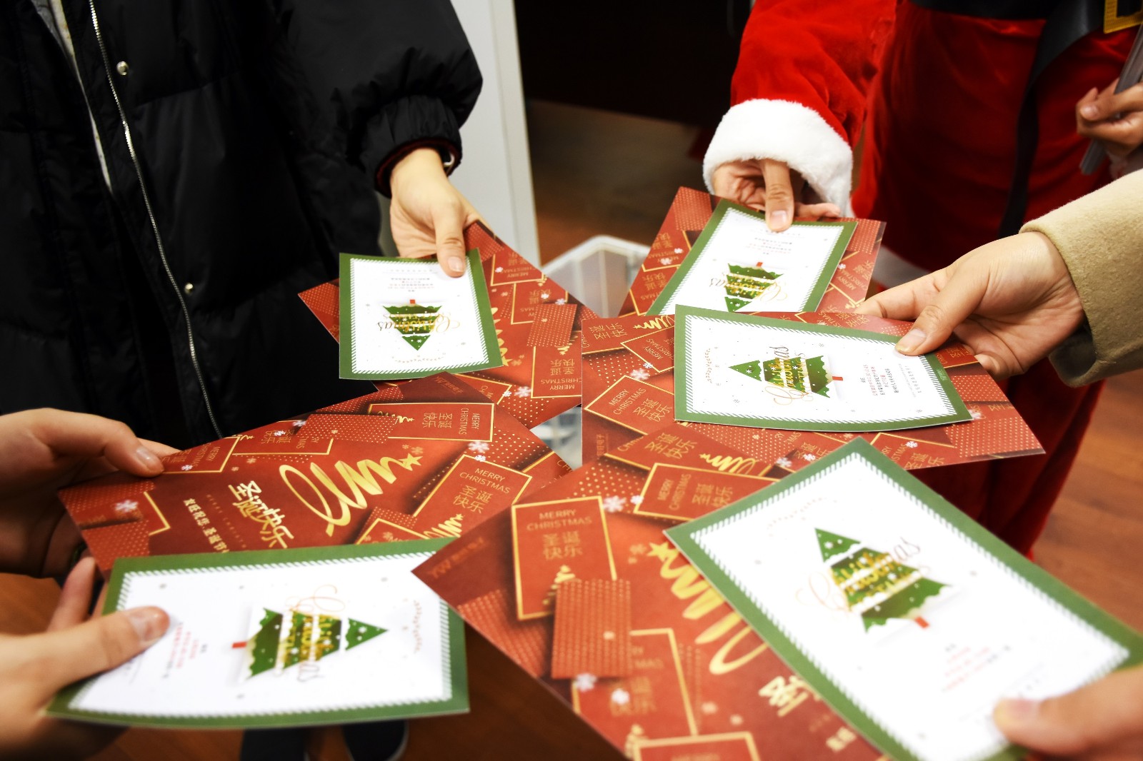 12月24日12:45活動(dòng)正式開(kāi)始,前來(lái)參與部門活動(dòng)的同事們熱情高漲,早早地等在了悅動(dòng)芯球門口?;顒?dòng)伊始,銷售管理部的同事一馬當(dāng)先,兩人夾著氣球飛快的沖向終點(diǎn),最先將三個(gè)氣球運(yùn)輸過(guò)線。經(jīng)過(guò)一番激烈的比拼,每個(gè)部門都拿到了一份用來(lái)裝飾辦公室的禮品。當(dāng)日下午,圣誕老人帶著圣誕賀卡與任務(wù)卡從悅動(dòng)芯球出發(fā),敲響每一個(gè)辦公室的大門,一聲“Merry Christmas”,為每位同事送去圣誕的祝福。辦公室里手快的同事們已經(jīng)用中午贏得的小禮品裝飾起了辦公室,同事們見(jiàn)到圣誕老人都很興奮,紛紛要求合影留念,臉上洋溢著快樂(lè)的笑容。