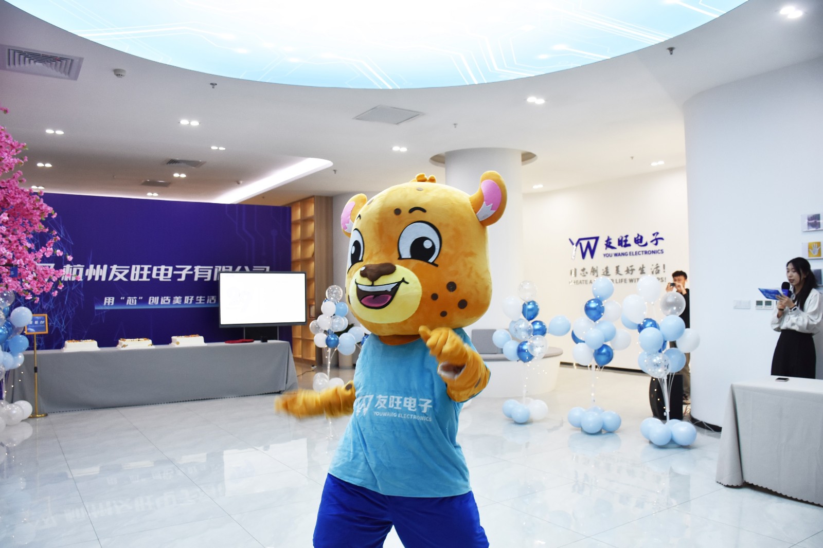 在輕松歡快的歌聲中,活動(dòng)逐漸拉開帷幕。許多同事早早來到活動(dòng)現(xiàn)場領(lǐng)取了入場明信片,我們的吉祥物小豹子也來到了現(xiàn)場與大家互動(dòng)。12:40活動(dòng)正式開始。開幕式上,羅總致開幕詞。羅總表示:友旺即將進(jìn)入第四個(gè)十年,希望友旺的小伙伴們能夠繼續(xù)與友旺一起成長,在個(gè)人空間和個(gè)人發(fā)展上更進(jìn)一步。