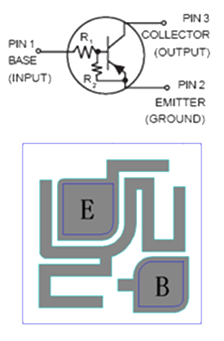 ★ Y7037NB是利用硅外延工藝生產(chǎn)的PNP型帶偏置電阻三極管芯片