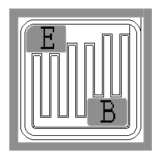 芯片背極為集電極,基極與發(fā)射極的鍵合點位置見右圖
