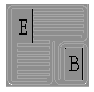 芯片背面為集電極,基極與發(fā)射極的鍵合點位置見右圖