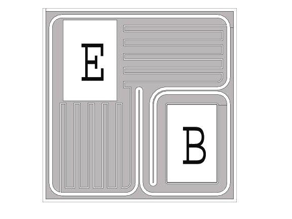 芯片背面為集電極,基極與發(fā)射極的鍵合點位置見右圖