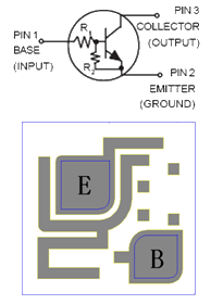 芯片背極為集電極,基極與發(fā)射極的鍵合點(diǎn)位置見右圖